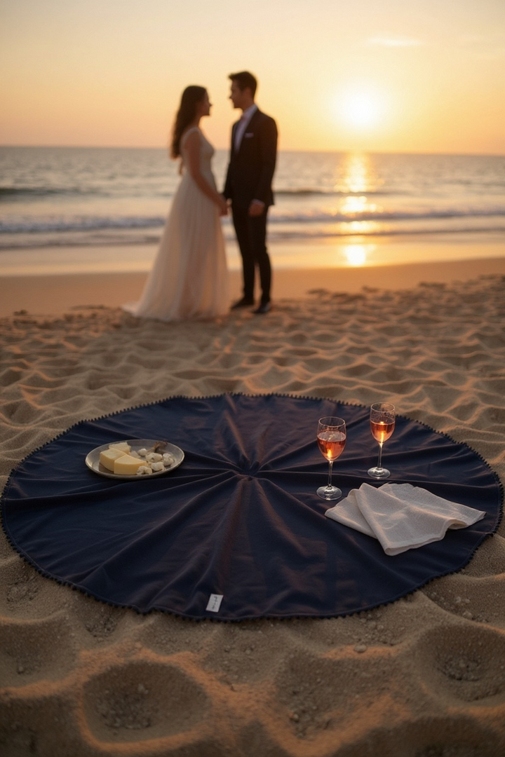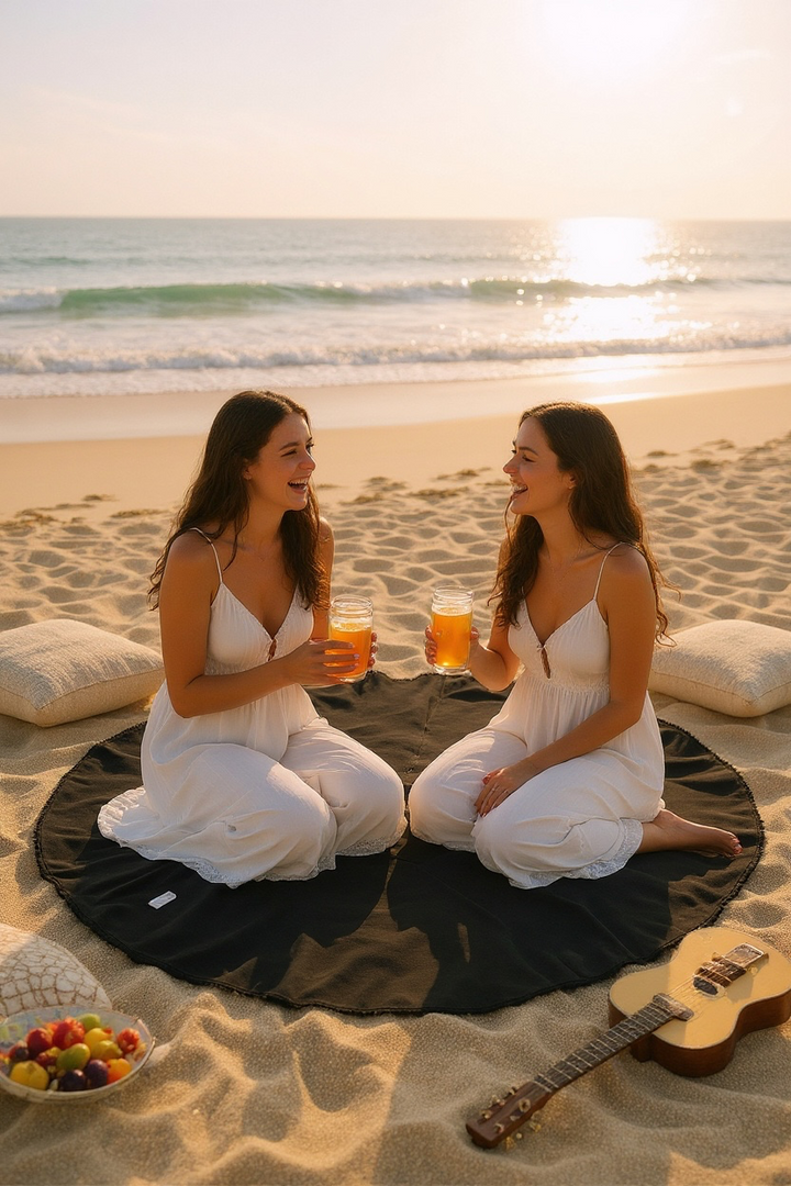 As fotos ambientadas foram geradas com IA, meramente ilustrativas (praia e grama)
