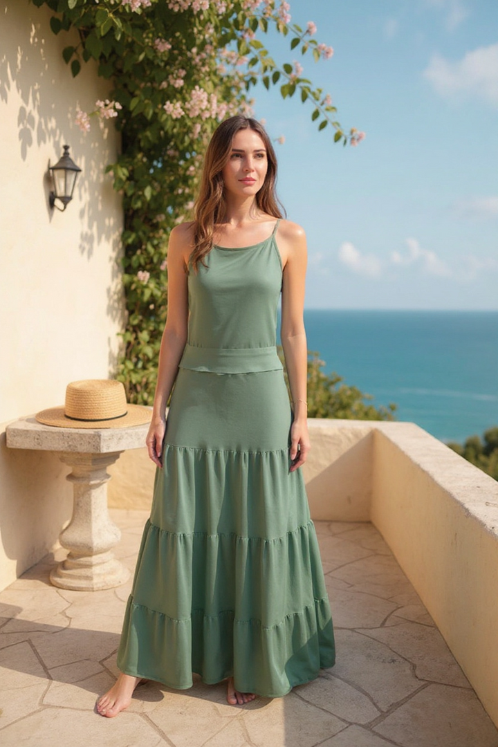 Combine elegância e versatilidade com o nossa Regata Praia do Forte. Perfeita para looks praianos e urbanos.