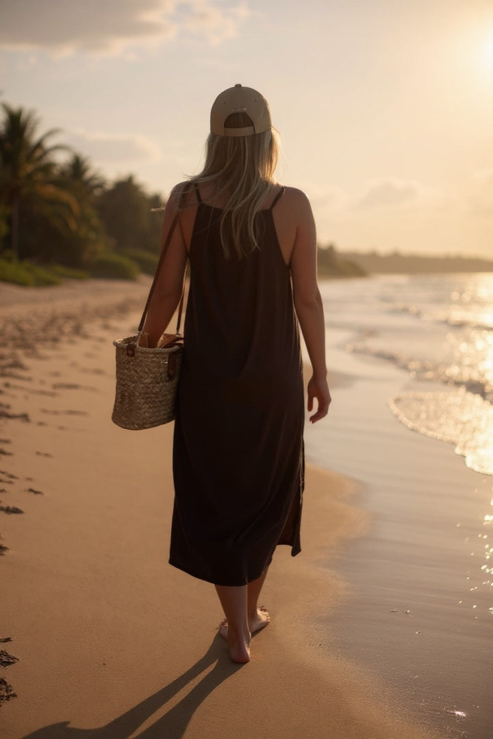 O tecido Fluity, com seu toque geladinho e caimento impecável, abraça suas curvas com naturalidade, moldando-se ao seu corpo com facilidade e sem nenhuma preocupação com transparência. E para que você aproveite o sol com total segurança, o Vestido Midi La Digue possui proteção UV50+, cuidando da sua pele com a mesma delicadeza que veste você.