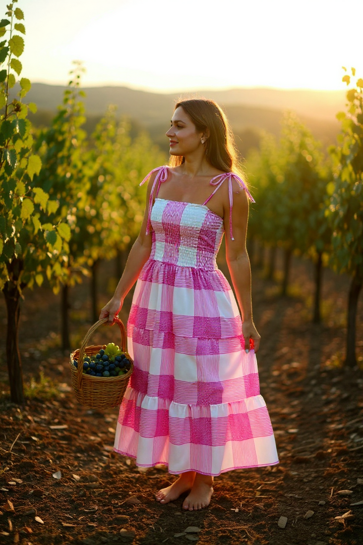 Vestido midi com saia camadas e corpo em lastex com laço para amarração. Se ajusta a qualquer tipo de corpo.