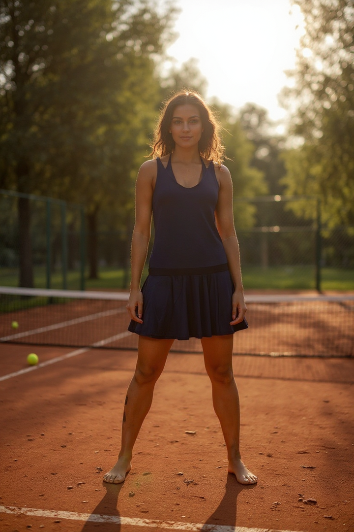 Com um design inteligente de regata dupla e alongada, oferece um caimento suave e elegante. O decote em V tanto na frente quanto nas costas valoriza a silhueta com um toque de feminilidade discreta. A sainha godê proporciona um movimento gracioso e fluido, adicionando um charme especial ao seu look.